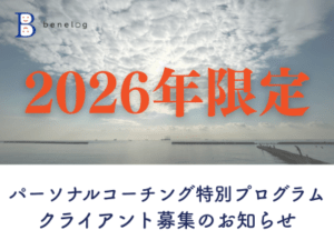 パーソナルコーチング プログラム パーソナルコーチングプログラムは、コーチとクライアントとの1対1のコーチングセッションをおおむね月に1回、半年間かけて実施します。1回のコーチングセッションは30分ですが、その短い時間の中でたくさんのことを経験することになるでしょう。 すでに心からやりたい、誰に止められても達成したいと思うことがあってもなくても、より良く生きていきたいという気持ちがあれば、コーチングによってきっとあなたの人生は大きく変わります。半年間をかけて、じっくりと自分のマインドを探求して、新しい自分を発見してください。 実施頻度/期間/回数 月1回/6ヶ月/計6回 セッション1回あたりの時間 30分 実施方法 リアル対面またはオンライン(Zoom) 料 金 ¥1,056,000-(税込) 上記がおすすめしている標準的なプログラムです。実施頻度、期間、回数を変更することは可能ですが、原則、半年5回よりも期間が短く頻度が少ないプログラムでの実施はお受けできません。 特別料金で提供する2026年限定のパーソナルコーチングプログラムについては、⬇️でご確認ください。 ★ ★ ★ コーチング開始まで ①パーソナルコーチングプログラム申込み このページ下の「お申し込み」ボタンから申し込みフォームへアクセスしてください。必要事項の記入と同時に、事前説明会実施のご希望日時についてお知らせください。 ※お申し込み前に解消しておきたい疑問などがある場合には、「個別相談」や「トライアルコーチング」をご利用頂けます。 ↓ ② 事前説明会実施(オンライン) まずパーソナルコーチングプログラムにお申し込みされた動機などをヒアリングさせて頂きます。その上で、プログラム開始までの手続きやプログラムの進め方などについて説明させて頂きます。所用時間は40分程度です。 ↓ ③ 契約書の締結 実施プログラム決定後、契約を結んでいただきます。秘密保持条項を含む契約書を交わすことによりコーチングセッションで交わされる会話の中に秘密にすべき内容が含まれていても、安心してお話しいただけます。 ↓ ④ ご入金(銀行振込) 契約書で取り決めた期日までに、銀行振り込みによる全額前払いをお願いいたします。 ↓ ⑤ パーソナルコーチングプログラム開始 入金確認後、メールでのやり取りで初回の実施日時を取り決めます。2回目以降については、毎回のコーチングセッションの最後に日時を決めることとします。 実施方法について 対面 or オンラインで実施 クライアントとコーチの1対1の対面、または、オンライン(Zoom)で実施します。ただし、オンラインの場合であっても、初回または期間中の最低1回は、できる限り対面での実施をお勧めしています。 対面の場合の実施場所 リアル対面の場合は、通常は兵庫県神戸市の三宮・元町周辺で行います。落ち着いて話ができる環境であれば、街中の喫茶店などでも実施可能です。国内遠方へ出張して実施の場合、原則、出張交通費については別途ご請求させて頂きます。但し、ご相談内容によってはその限りではありません。 遅刻の場合 事前に連絡なくセッションのお約束の時間に来られなかった場合(オンライン会議に入られなかった場合)、最大15分お待ちしてそれでもセッションが開始できない場合にはそのセッションをキャンセルとします。ただし、そのセッション分は実施したものとみなし、日時の振替は行いません。 お話しいただくテーマ セッションの時間は、クライアントが自由にお話しいただく時間です。コーチからその場で話していただくテーマを提示する事はありません。お話ししたいテーマをあらかじめお考えになり、セッションにご参加下さい。 次のセッションまで コーチングセッションの中で起きることと同様に、次のセッションまでの期間をどう過ごすのかも大事です。ゴールについて考えたり、ご自身の日々の判断や行動を確認する時間として使ってください。 お申込み まだ迷っている方は パーソナルコーチングプログラムをお申し込みいただく前に、コーチングに関するご質問などをお受けする個別相談や、30分のコーチングセッションをお試しで体験いただけるトライアルコーチングをご用意しておりますので、ご利用ください。 個別相談 パーソナルコーチングプログラムに、ご興味のある方のご相談に応じます。方法:対面またはZoom時間:60分料金:11,000円(税込) お申込み トライアルコーチング コーチングセッション30分とその後の質疑応答及びパーソナルコーチングプログラムの説明で30分の計60分 対象:過去にベネログでコーチングを受けたことがない方方法:対面またはZoom料金:55,000円(税込) お申込み